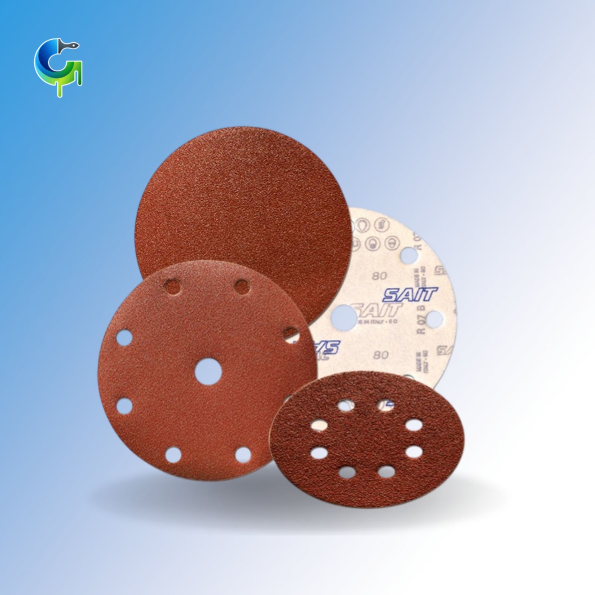 Dischi autoaggrappanti di carta abrasiva per lavorazioni con macchine rotorbitali a secco.