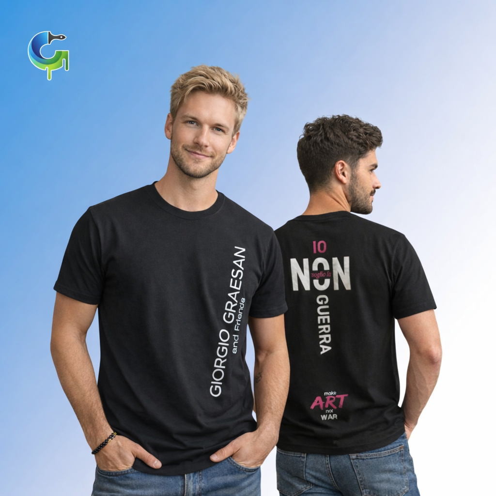 La T-shirt nera “Make Art Not War” firmata Giorgio Graesan & Friends è oramai diventata un capo cult tra gli addetti ai lavori e non solo.