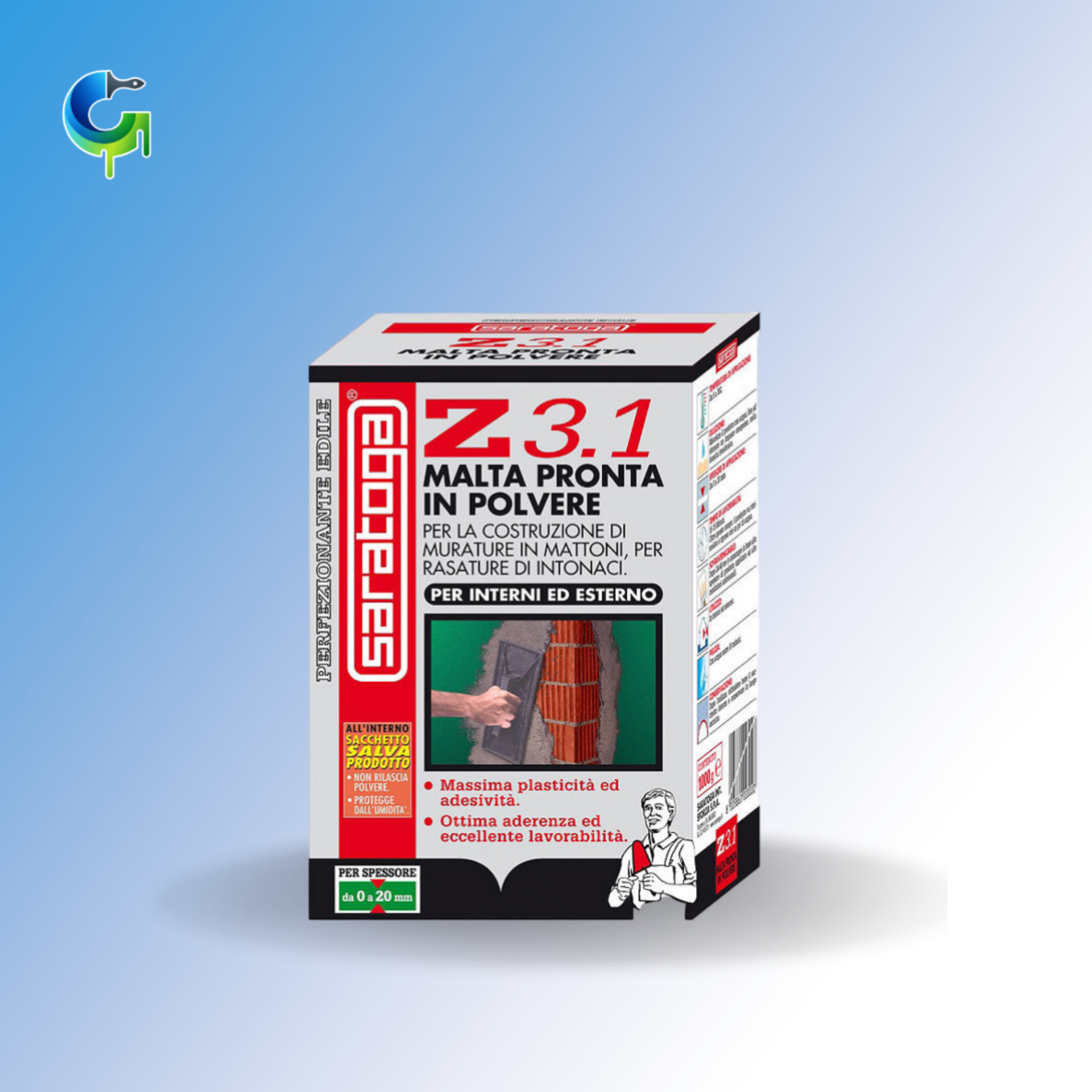 Saratoga Z3.1 è una malta bastarda fine adatta per interni ed esterni, viene fornita con un sacchetto salva prodotto.